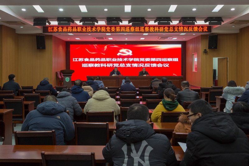 2021年12月28日上午,江苏食品药品职业技术学院党委第四巡察组巡察教科研党总支情况反馈会议在第四会议室召开。第四巡察组组长安进、副组长李红及第四巡察组其他成员出席了会议,会议由教科研党总支书记郑洪成主持,教科研党总支全体教职工参加了会议。